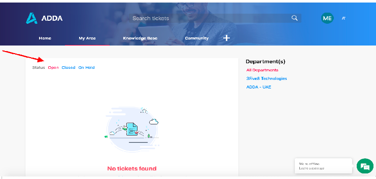 Please refer to the following steps: Step 1: Open your ADDA App and navigate to the Home page. Tap on ‘Helpdesk’. Step 2: You will see your tickets categorized under ‘Open’ and ‘Resolved’. Tap on any ticket to view the latest status updates and ...