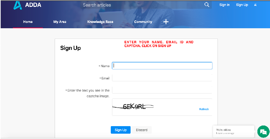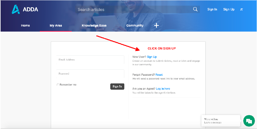STEP 3: You will be directed to the ADDA Helpdesk page, Click on My Area >> Click on Sigh up.